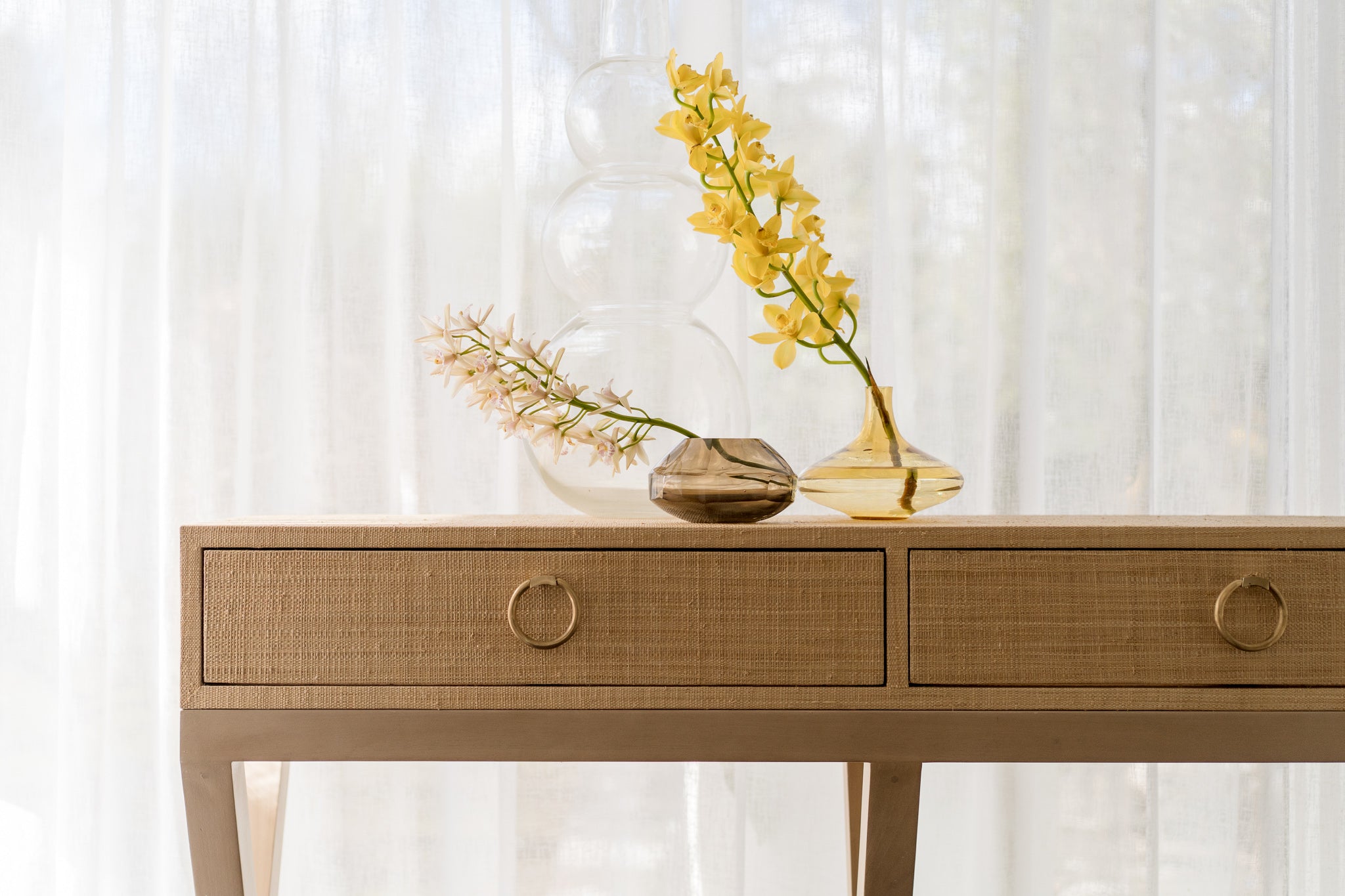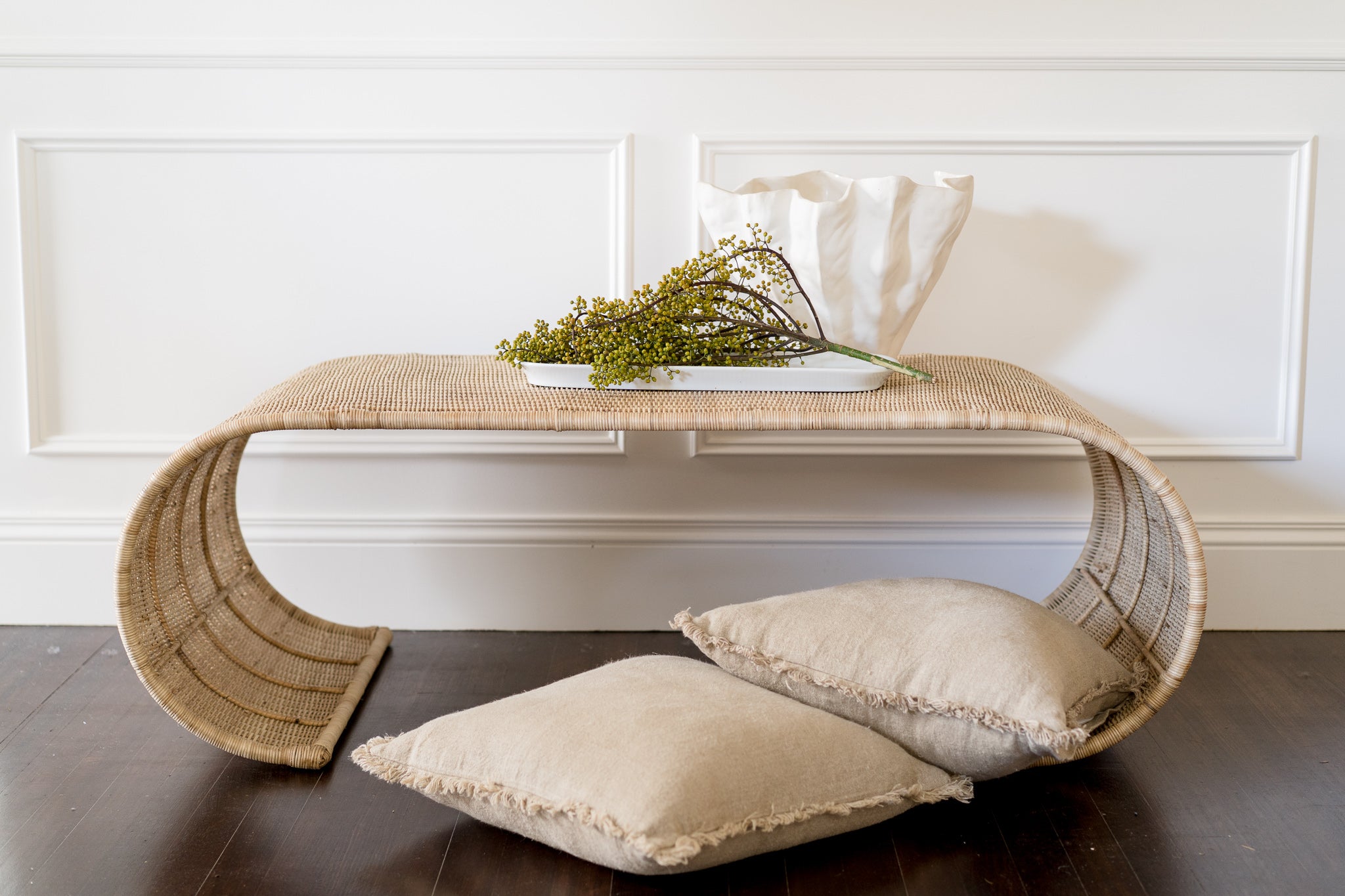 Bring texture and warmth into your home with the Kagu End Table with Raffia. Featuring a smooth timber top and a finely wrapped raffia base, this versatile side table blends natural materials with a contemporary silhouette. Perfect as a bedside table, next to your sofa, or as an accent piece in a reading nook, it suits coastal, bohemian, and modern interiors alike.