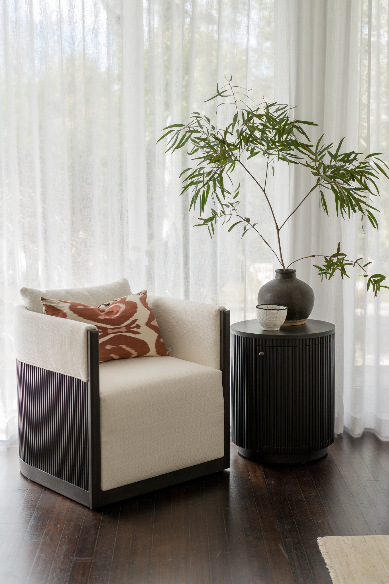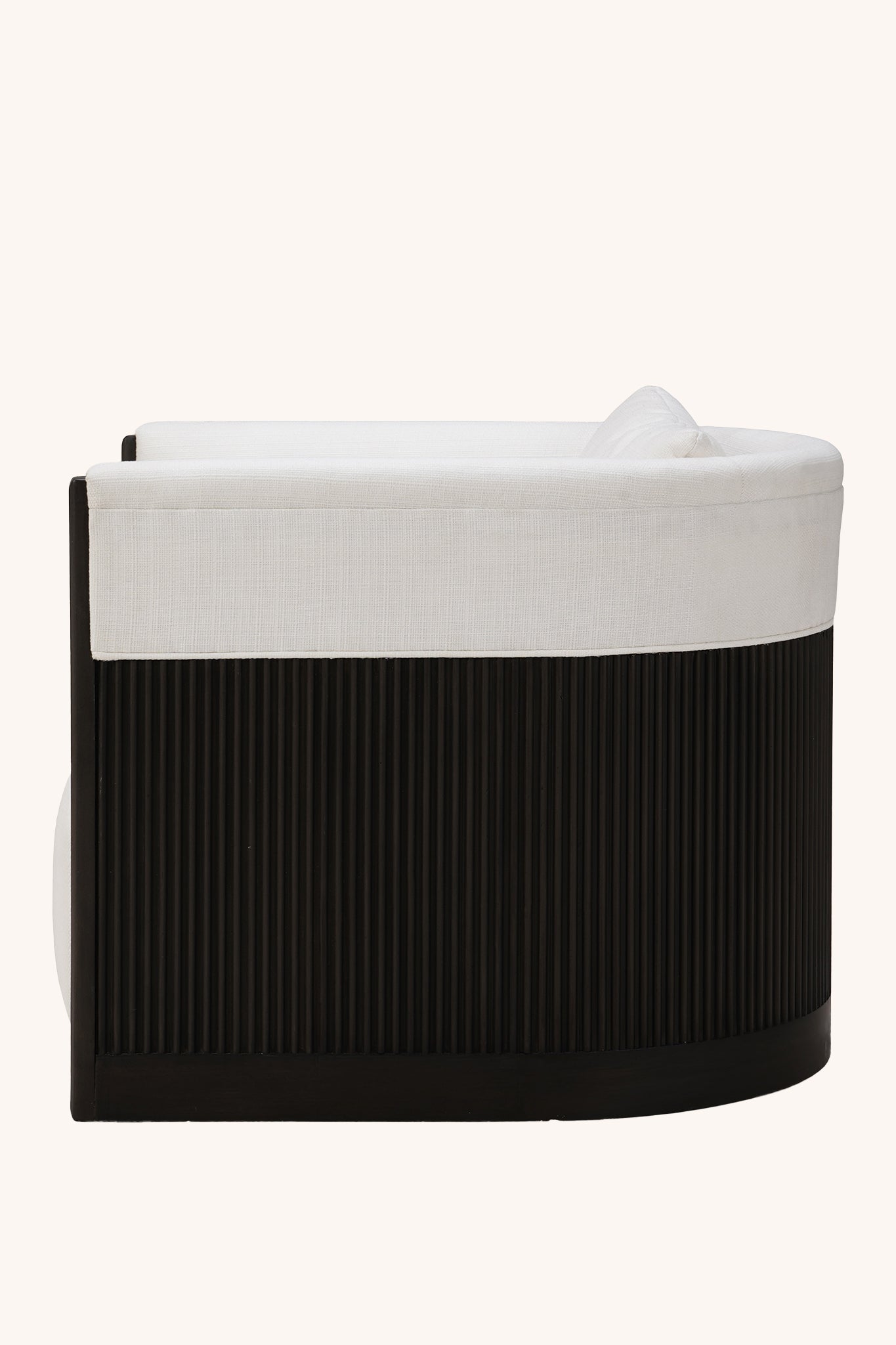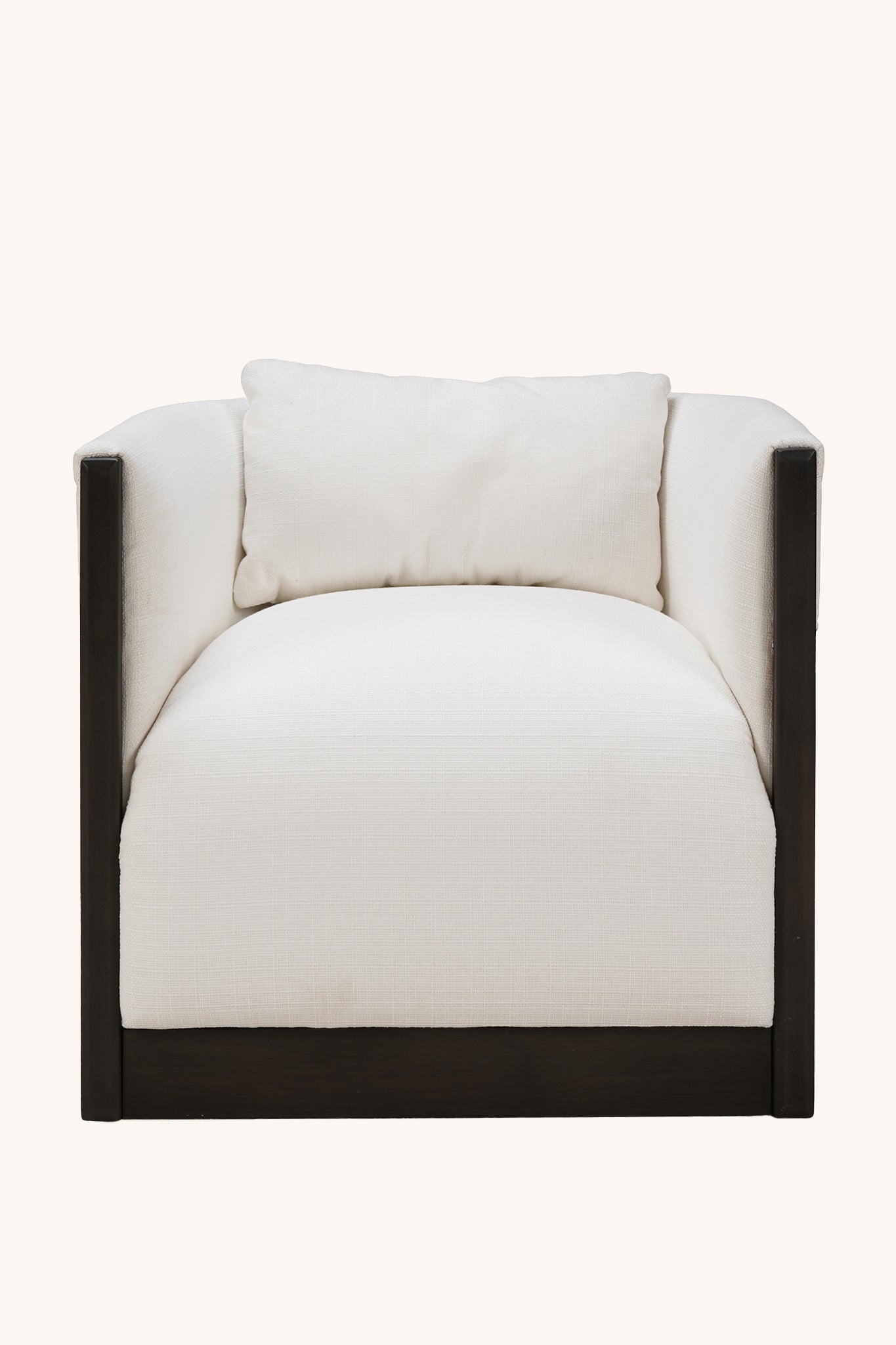 The Kraton Swivel Chair combines comfort, style, and functionality, making it a versatile addition to living rooms, offices, or lounge areas. Featuring a mahogany wood frame with a Grey Oak finish and Arctic White covers, this swivel chair brings a modern, neutral aesthetic that complements a variety of interiors.