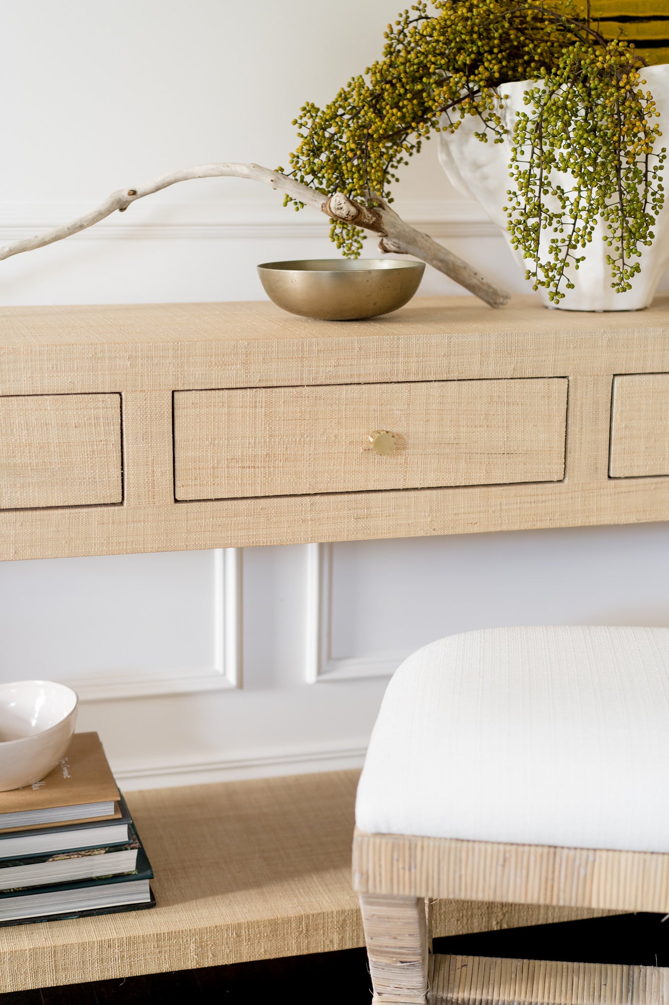 Kagu Console Table with Raffia