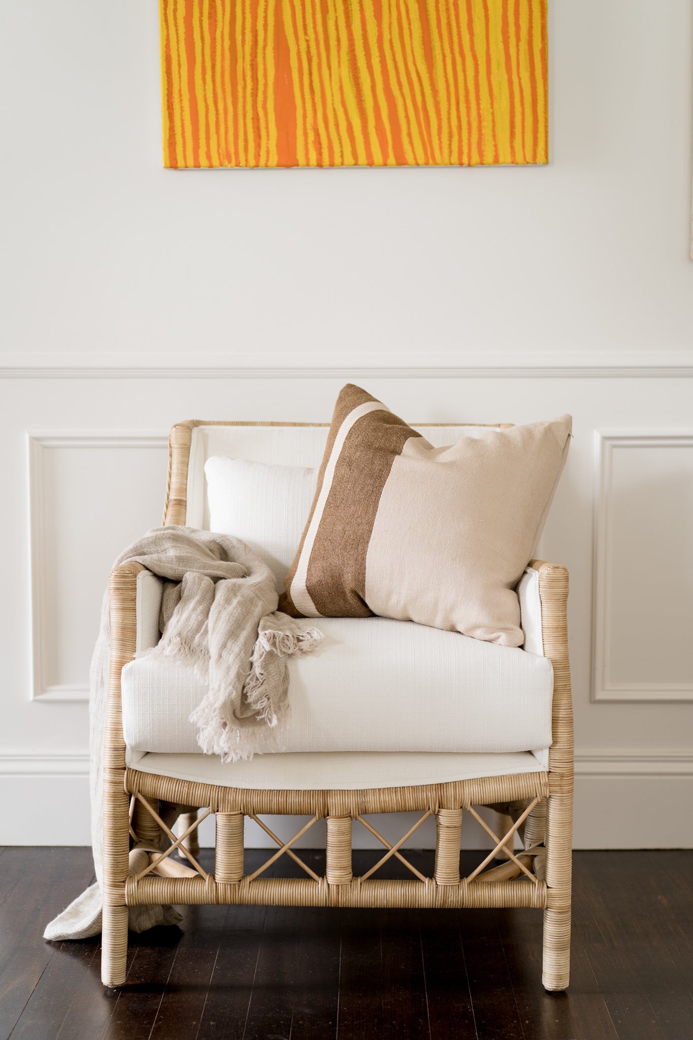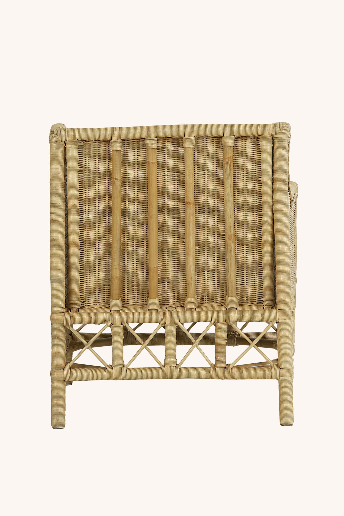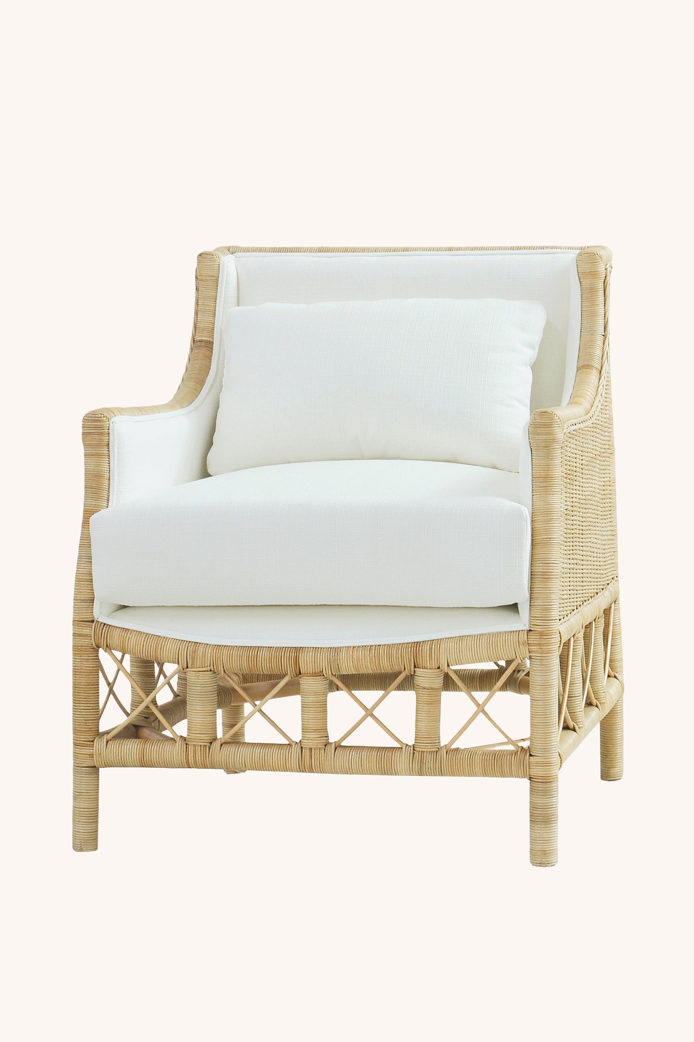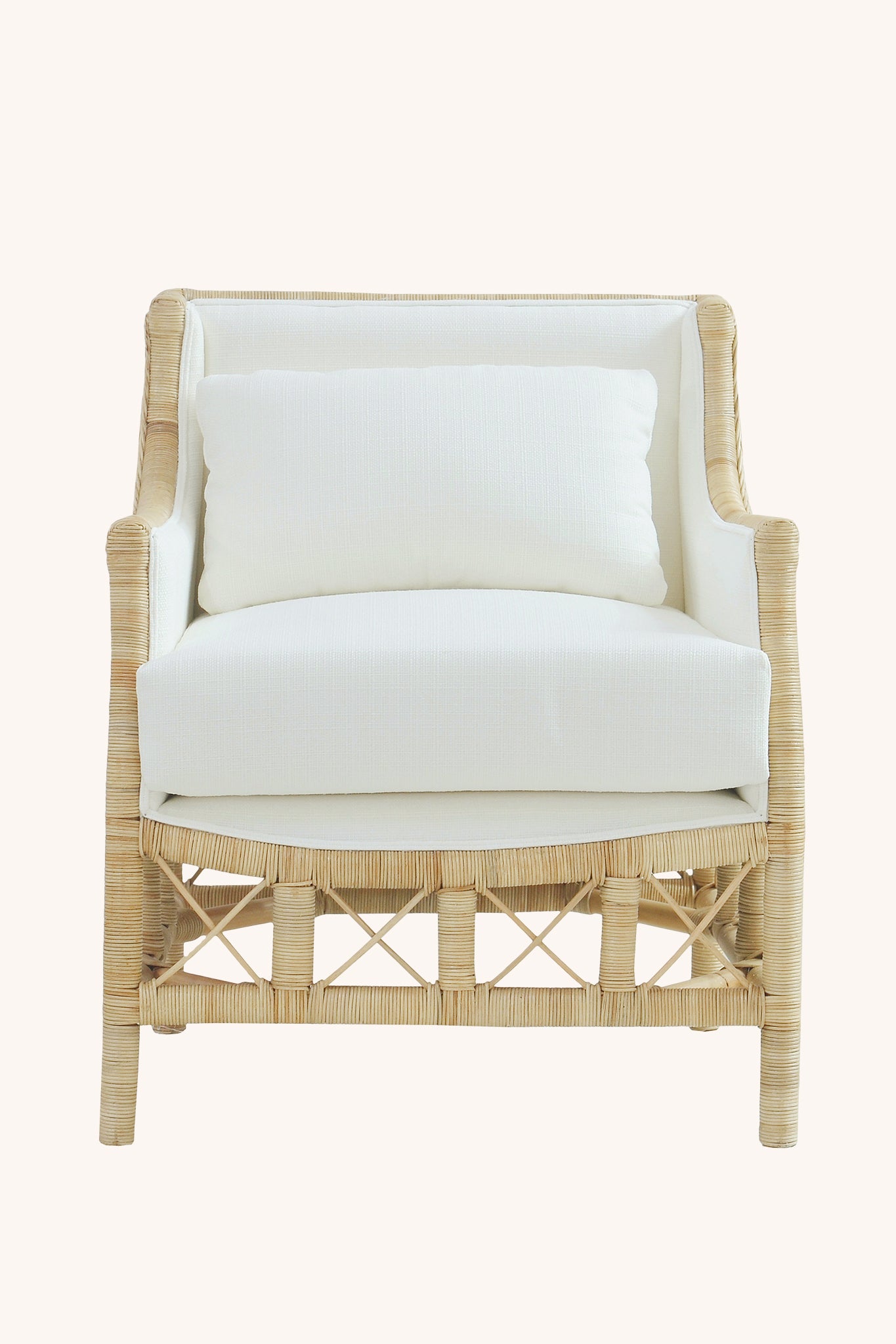 The Rabana Rattan Occasional Chair brings natural texture and relaxed style to your living room, lounge, or bedroom. Featuring a rattan frame with natural rattan weaving and Arctic White covers, this chair combines organic warmth with a modern, lightweight design, making it a versatile choice for coastal, bohemian, and contemporary interiors.