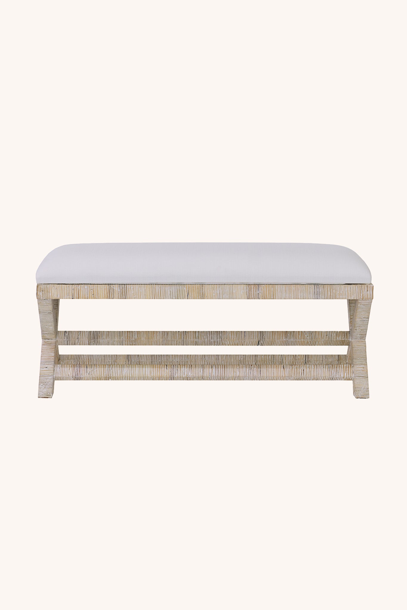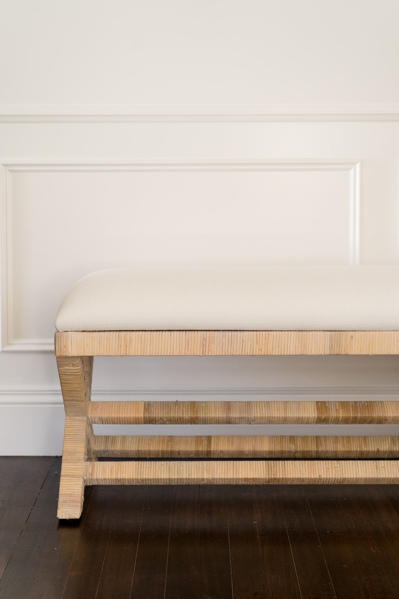The Renoir Rattan Bench - Medium brings natural texture and versatile style to your living space, entryway, or bedroom. Featuring a mahogany wood frame with select rattan weaving in a natural finish, this bench combines durability with a light, airy design that complements coastal, bohemian, and contemporary interiors.